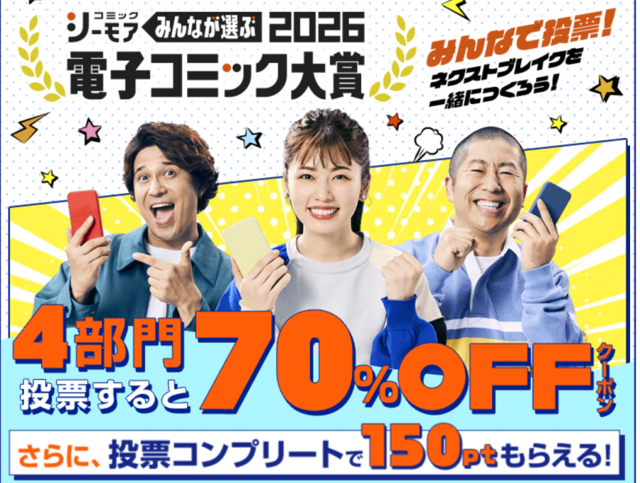| 概要 | 「電子コミック大賞2026」投票を4部門以上行うと、70%OFFクーポンがもらえる |